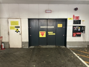 奥に扉と操作盤がありますので操作中も雨でぬれないので便利です◎