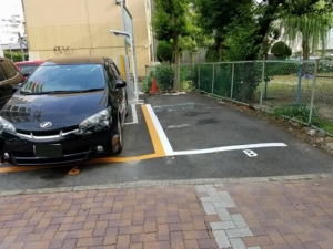 隣接するコインパーキングの丁度良く空いたスペースに新しく設置いたしました。