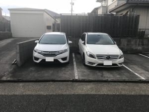 隣同士の幅はこんな感じです。ゆとりをもって駐車できます。