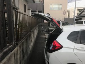 車止めまで下がった状態でもバックドアの開閉が可能です。
