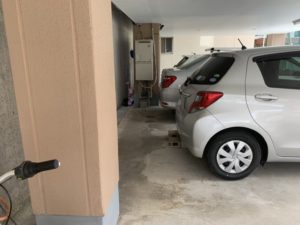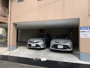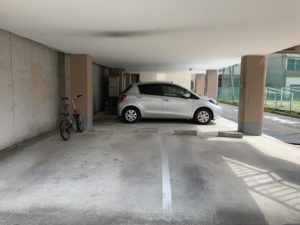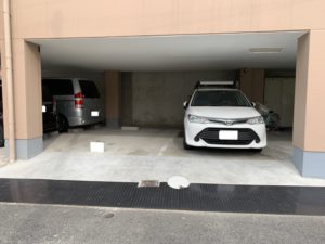 ↓車止めがある駐車場なので安心してバックでの駐車ができます。