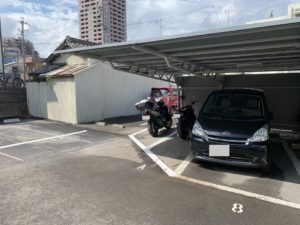 屋根付き区画の一番奥の区画がバイク区画になります。