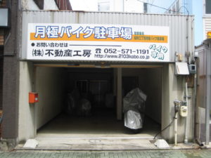 名古屋駅近くにある貴重な屋根付きバイク月極駐車場。