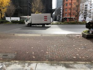前面道路は交通量が多いですが、歩道部分が広いので
