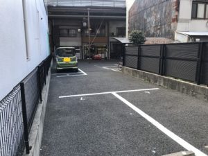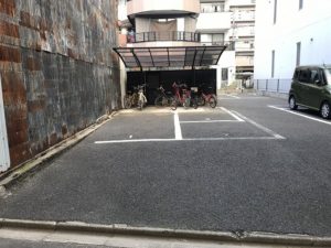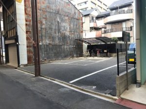 円頓寺商店街の中にあるアスファルトの月極駐車場です。