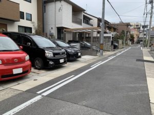 舗装部分が2つに分かれているので、区画幅はそれを目安に