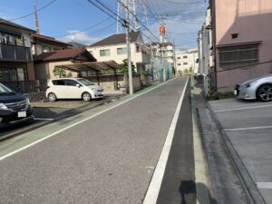 前面道路は一方通行ですが、交通量も少なく、