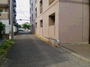 この通路の向こうに都道256号があります。