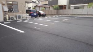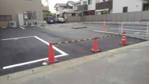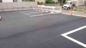 新しいきれいなアスファルト舗装の青空駐車場です。