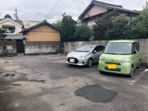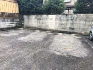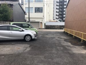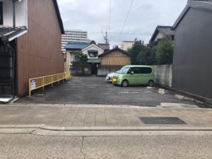 四間道エリアのアスファルト駐車場です。