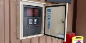 鍵で操作盤を開け、暗証番号で呼び出します。