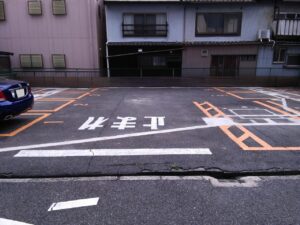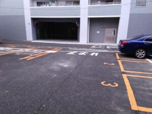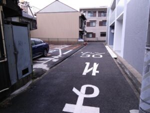 前面道路側の区画は道路に面しており同じく横並びに駐車します。