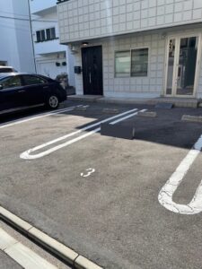 しっかりと区画ラインと車止めがあり、駐車場しやすいです。