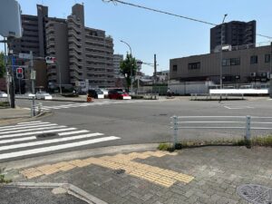 交通量は比較的多く、付近に交差点があるため、
