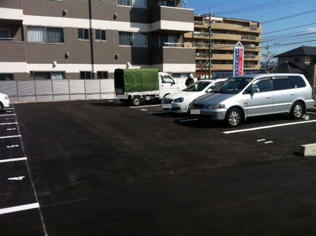 アスファルト舗装され、大通りと一方通行までつながっている広い駐車場です。