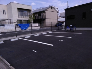 アスファルト舗装の青空駐車場です。