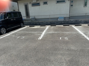 アパートの敷地内にあるアスファルト舗装の月極駐車場になります♪