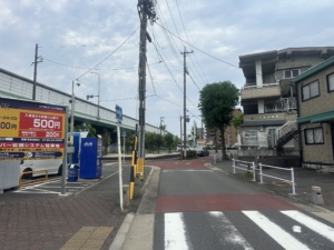 そばに大通りがありますが、駐車場の前は交通量が少なめなので
