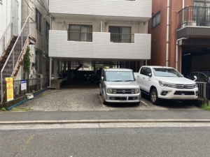 マンションの敷地内にあるコンクリート舗装の月極駐車場になります♪