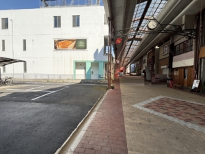 アーケード内にあるため、商店街に少し乗り入れて出入り形になります。