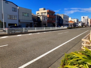 中央分離帯があるため、南への一方通行となっております。